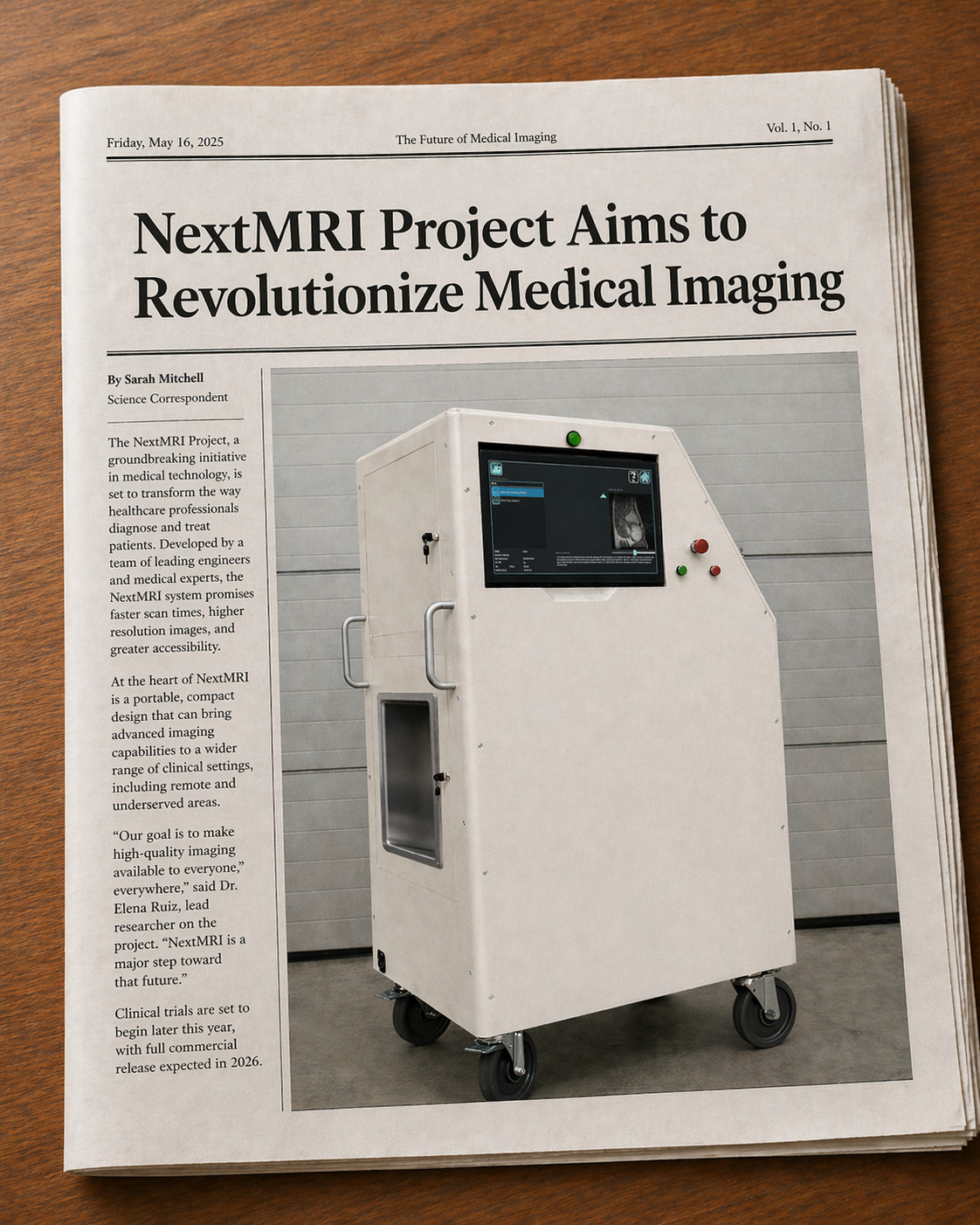 In this project we will take the necessary technical, industrial and entrepreneurial steps to tackle the massive deployment of low-field portable systems for point-of-care and bedside imaging in clinics large and small, home and hospice care, rural areas, sports facilities and events, making MRI available to a large fraction of the world population with no or insufficient access. To advance towards this highly ambitious goal, the objectives of the NextMRI project include